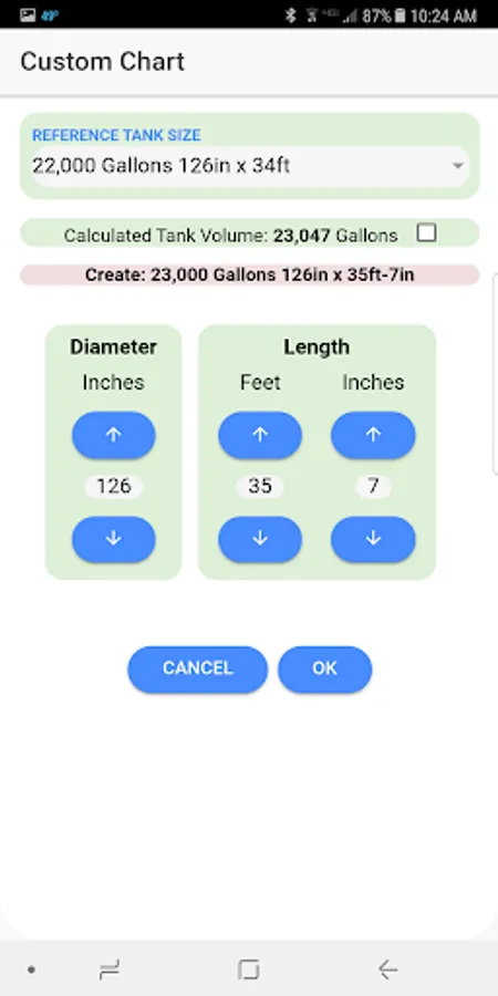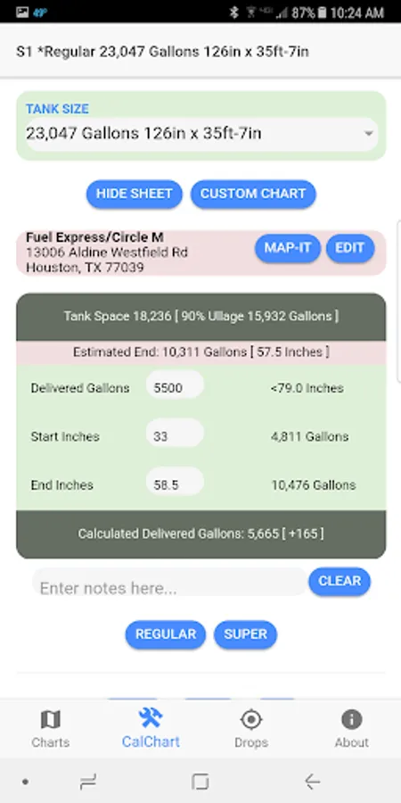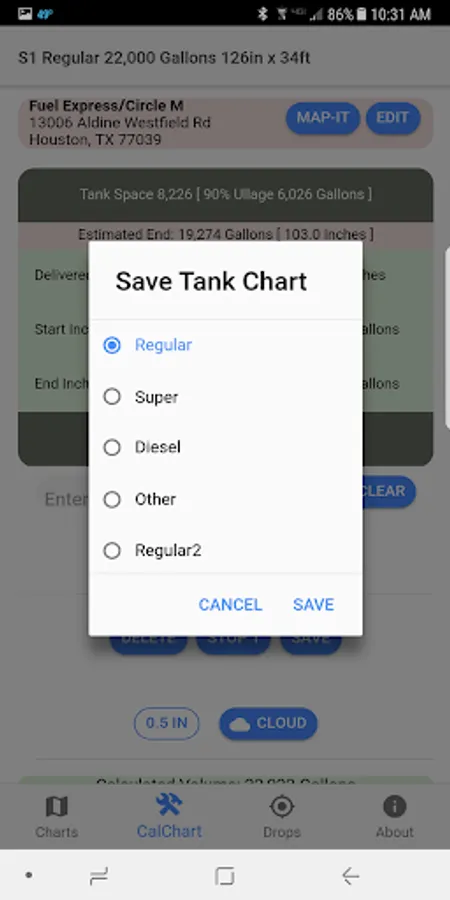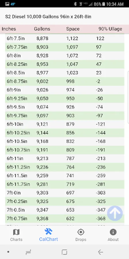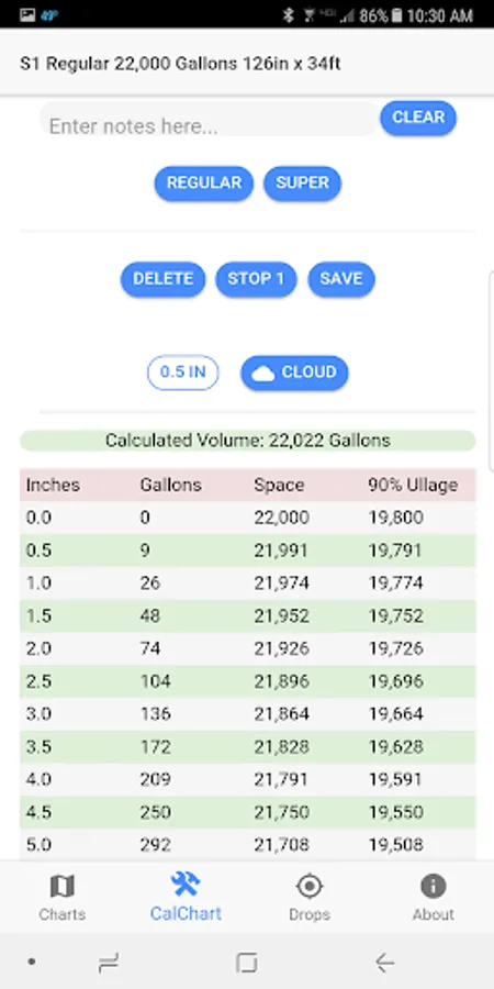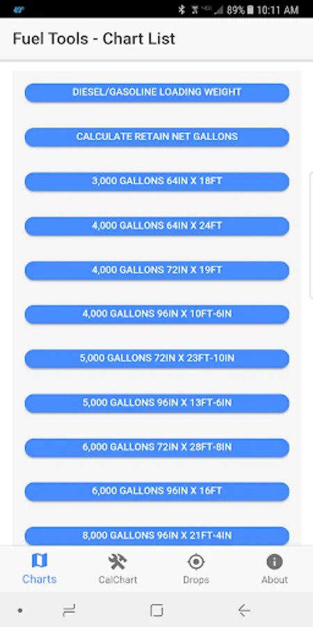 Lookup or Create Tank Gauge Charts and Diesel/Gasoline Loading Weights. Calculate NET Gallons for Retains.