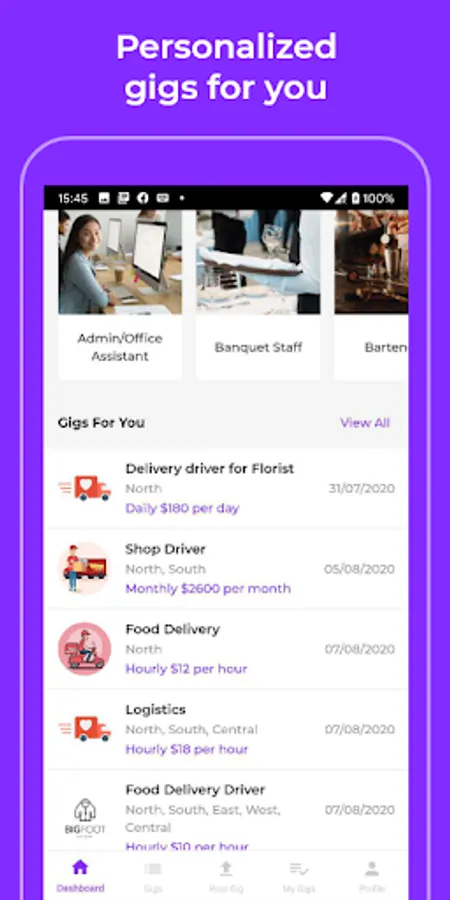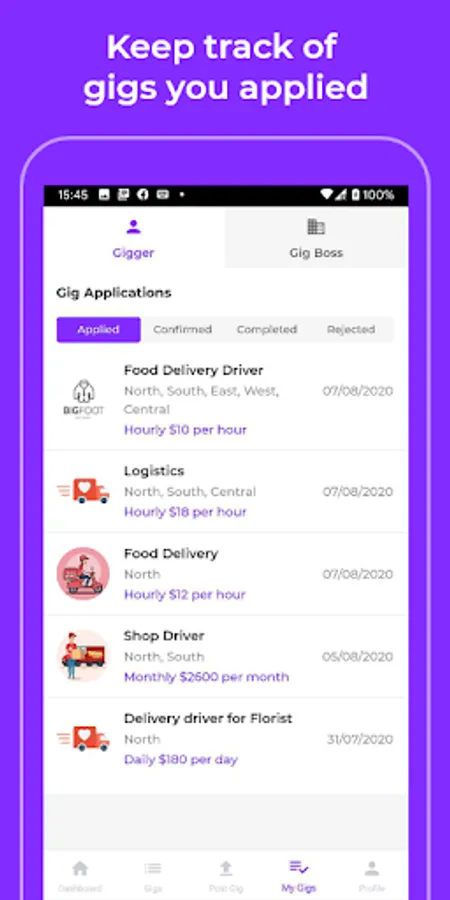 - Receive instant push notifications of gigs that match your criteria and from your favourite bosses.