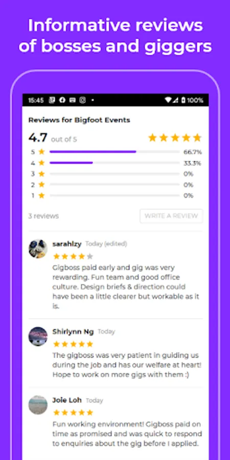 - Communicate with bosses or giggers via WhatsApp easily within the app.