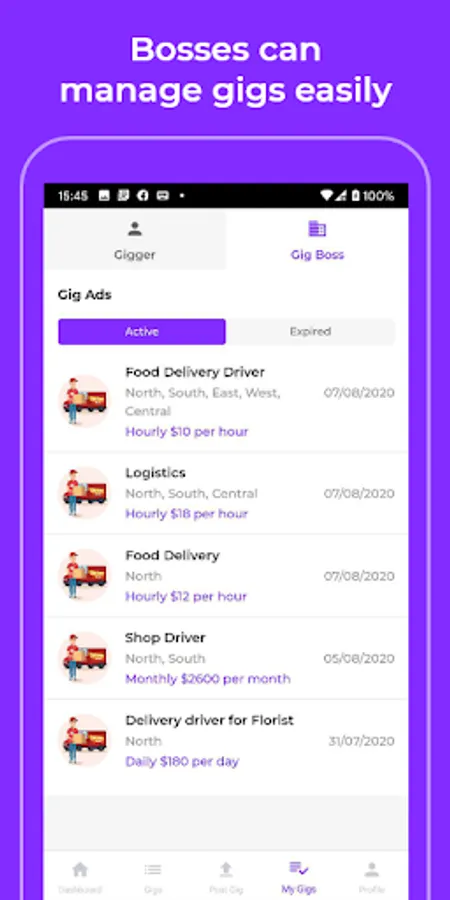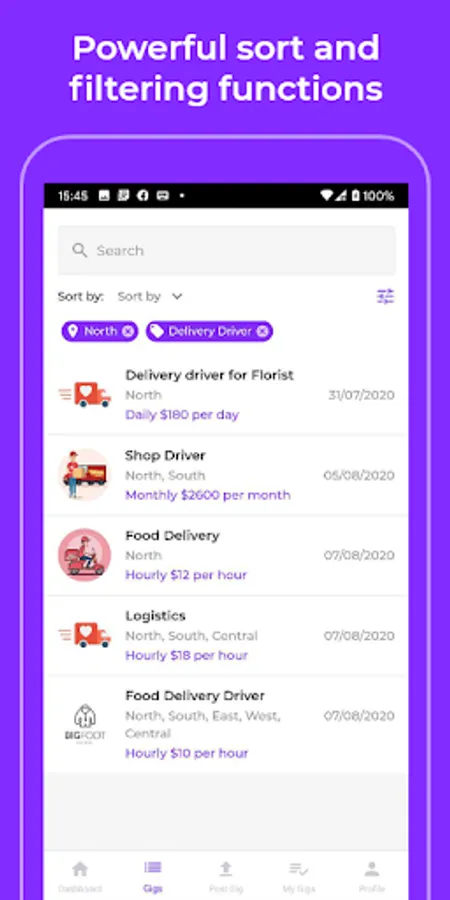 - Search by gig category, dates, location or bosses you follow. Advanced filtering options to help you find the perfect gig.