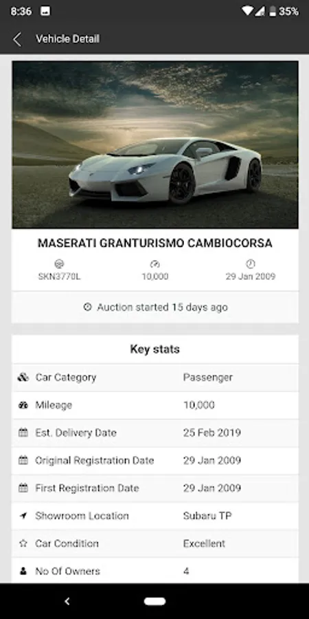Vehicle auction app for T8 Gallery Pte Ltd.