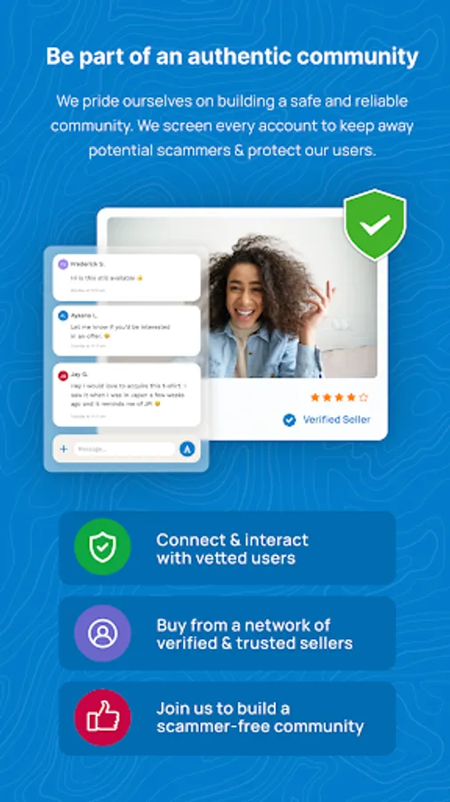 1. We are striving to be the safest neighborhood marketplace in America where authentic people can connect to buy and sell local deals with peace of mind. It is one of our top priorities to build a scammer-free community where all members are properly screened so that we can keep away scammers and potential high-risk cybercriminals.