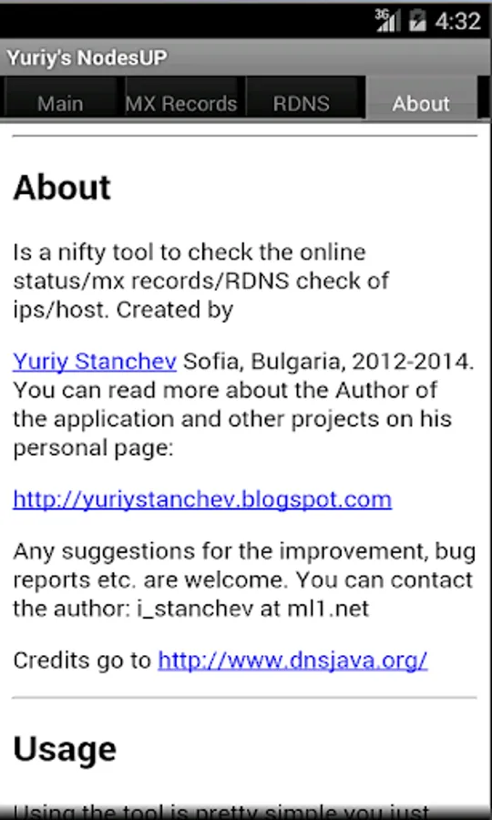 Is a nifty tool to check the online status of ips/host and do rdns check or get mx records.Using the tool is pretty simple you just input the ips/dns names that you want to ping/rdns or get the mx record and click refresh/check.