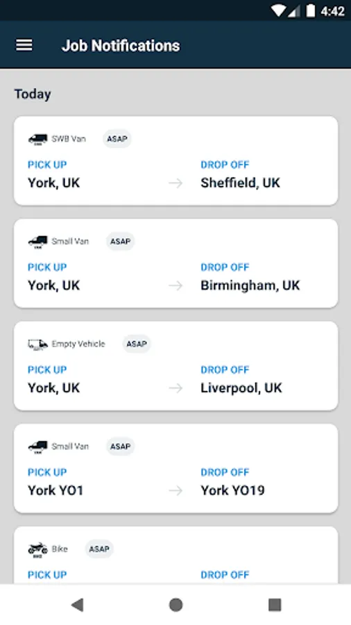 This has been developed by transport professionals for the transport industry using the latest technology; our aim is to be the no. 1 choice for couriers and hauliers due to the simplicity and accessibility of the mobile ready website and app. Offering the best platform at the best value for money and a personal customer service 24/7 to mirror the transport industry.