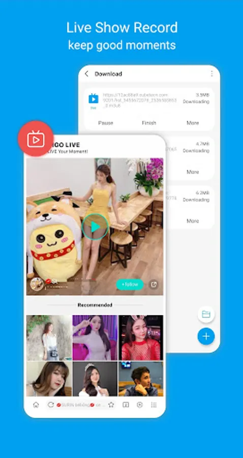 Tincat Browser can record m3u8,mpd live show videos. now is support most of live sites.