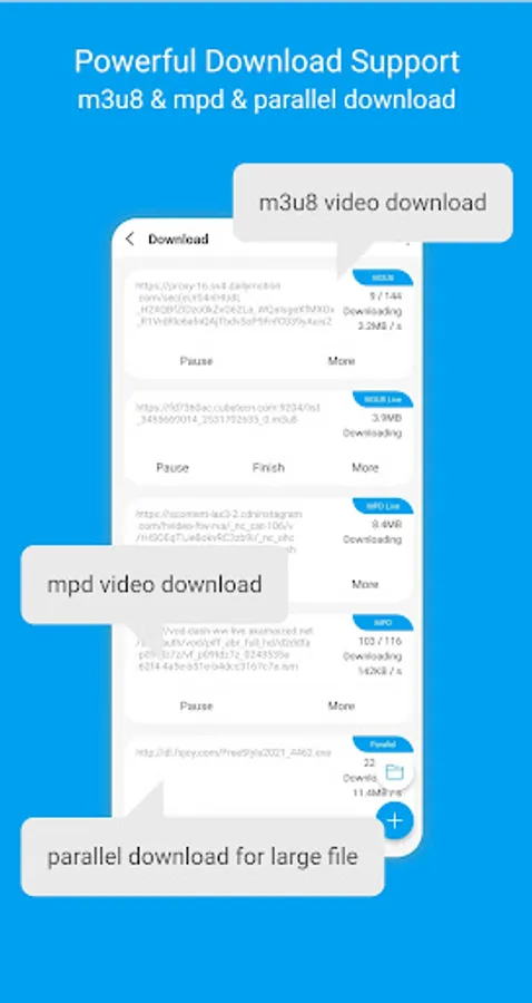 Tincat Browser support parallel download for mp4 and large file. it is very fast.