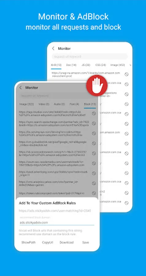 Tincat Browser provide a request monitor to show all http request of web pages. this is very useful for developers.
