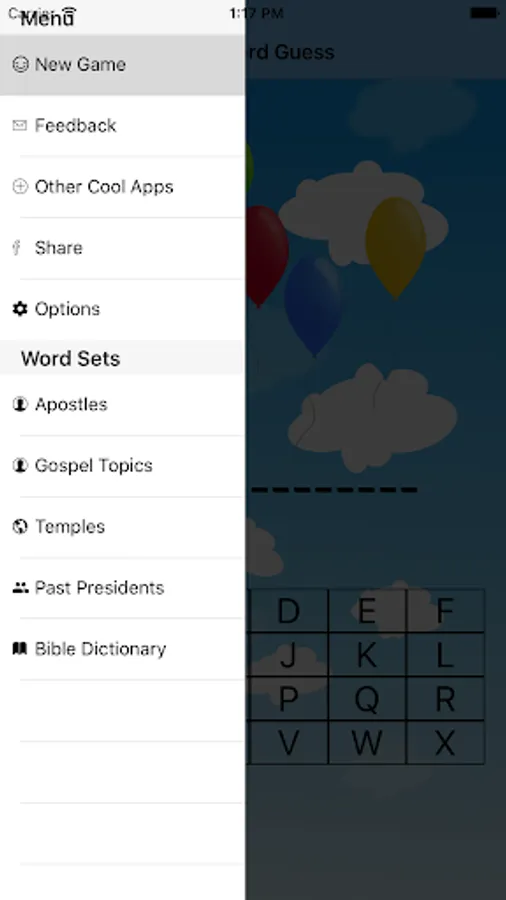 This is the classic game of hangman but with balloons that pop rather than...well...a hanging man. It uses LDS terms but as an alternative balloons pop for each letter missed so it is more friendly.
