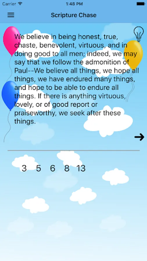 Balloons pop as you learn to memorize and locate scriptures to add some fun in your study.