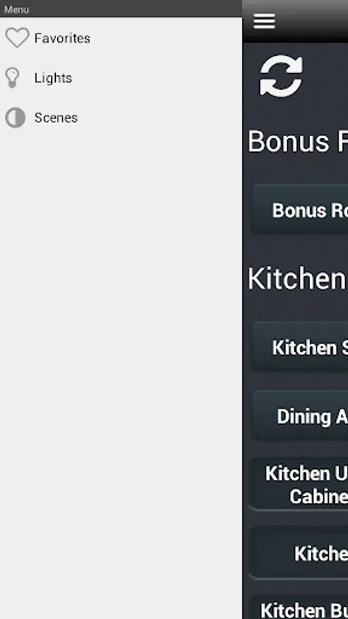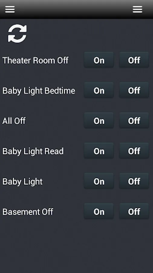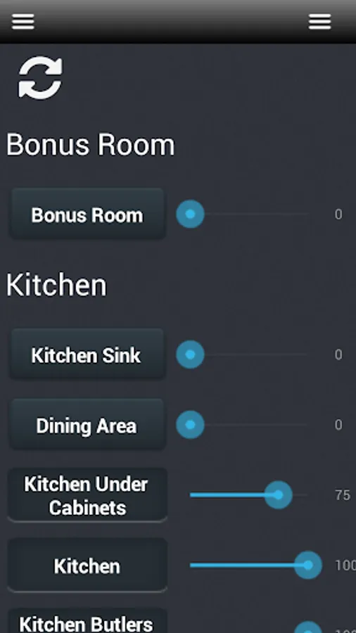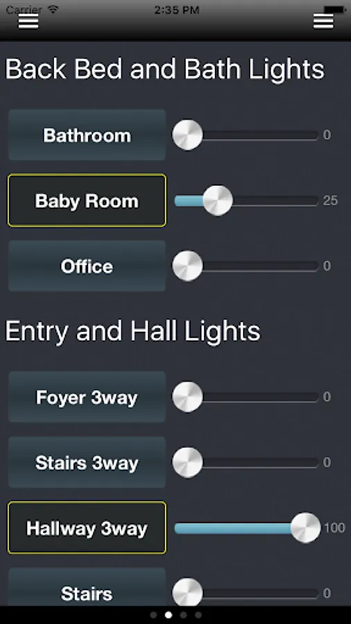 This list view makes it easy to see which lights are on or off. You can then turn them on or off or to a specific level with the slider.