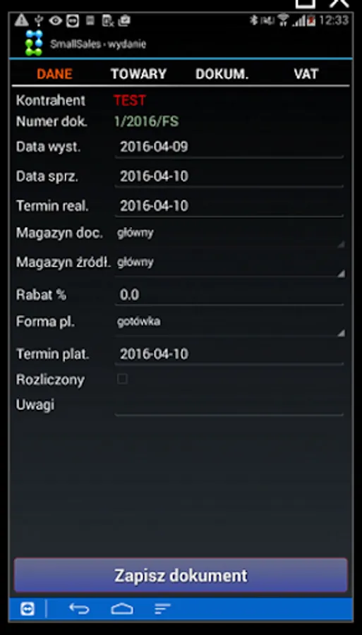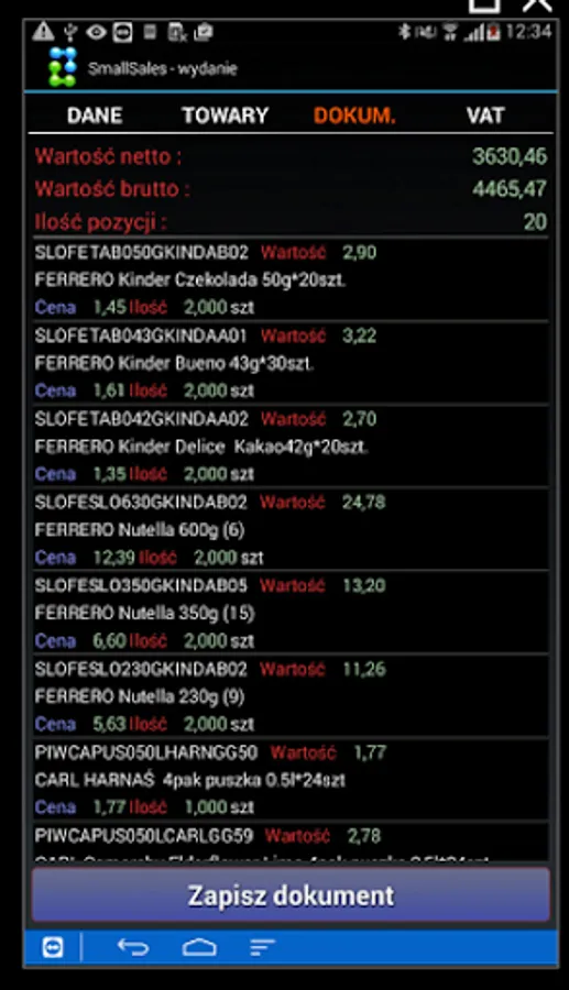 Small Sales application has been prepared for those who sell itinerant. It has records of the documents orders, sales and purchase documents. It lets settle the debts and liabilities. Built-in simple analysis and summary provide the ability to control sales and purchases. Operating Modes applications allow the entry of goods and contractors directly on the mobile device or import from an application running on Windows.
