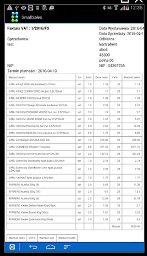 The system enables collaboration with mobile printers fiscal POSNET and ELZAB via bluetooth. Added the ability to print documents on printers whose drivers for Android provides printer manufacturer. The definition of the appearance of the documents is available for the user application for Windows. Defined prints imported to the device via a WiFi connection.
