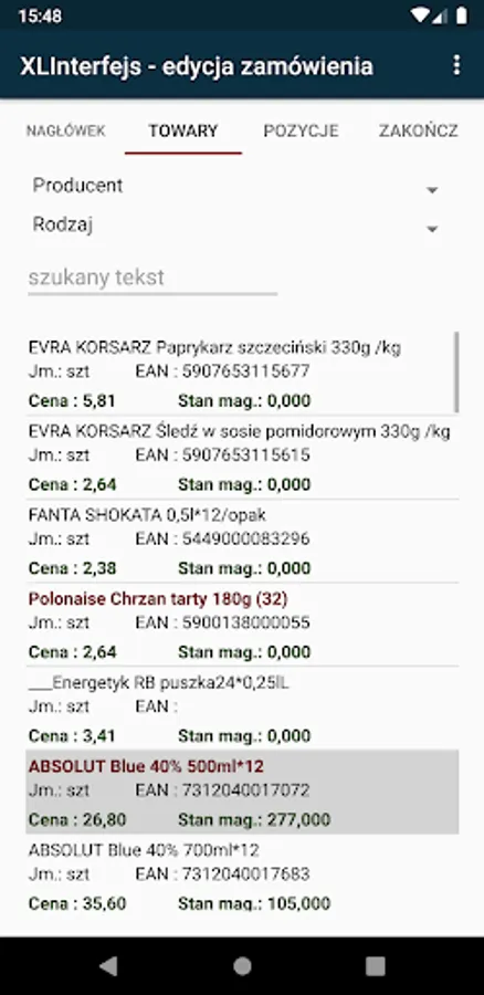 Multiple contractors can be assigned to a user. Thanks to this, we get the ability to create orders that are sent to ERP. The application downloads data via the REST server.