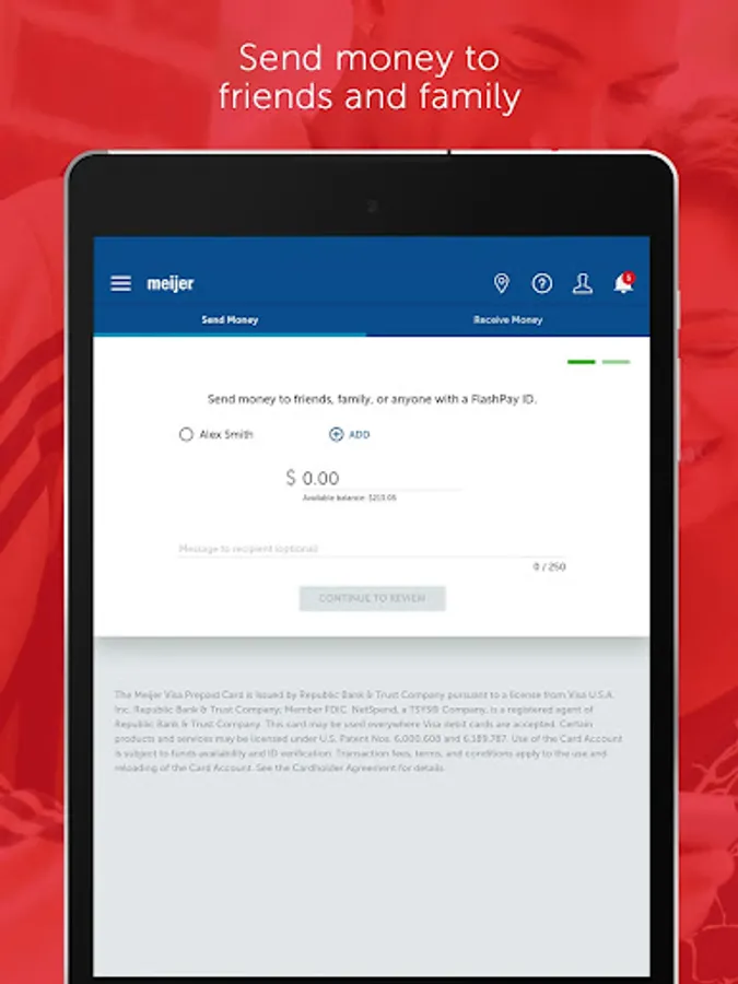 *** The Meijer Visa Prepaid Card is issued by Republic Bank & Trust Company, pursuant to a license from Visa U.S.A. Inc. Republic Bank & Trust Company; Member FDIC. NetSpend is a registered agent of Republic Bank & Trust Company. Certain products and services may be licensed under U.S. Patent Nos. 6,000,608 and 6,189,787. Use of the Card Account is subject to activation, ID verification and funds availability. Transaction fees, terms and conditions apply to the use and reloading of the Card Account. See Cardholder Agreement for details.