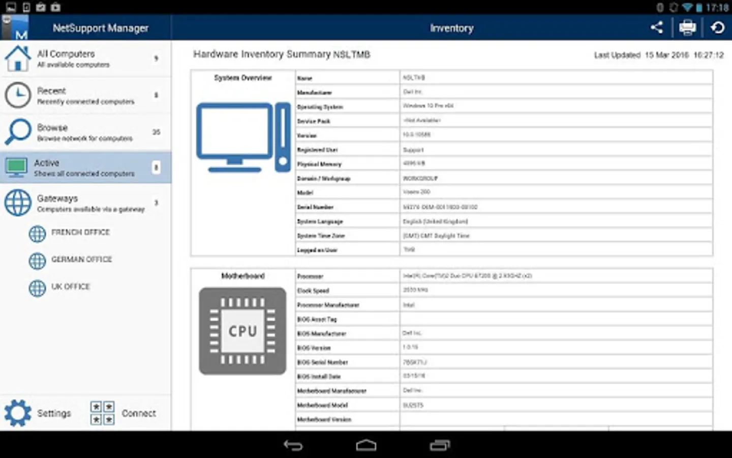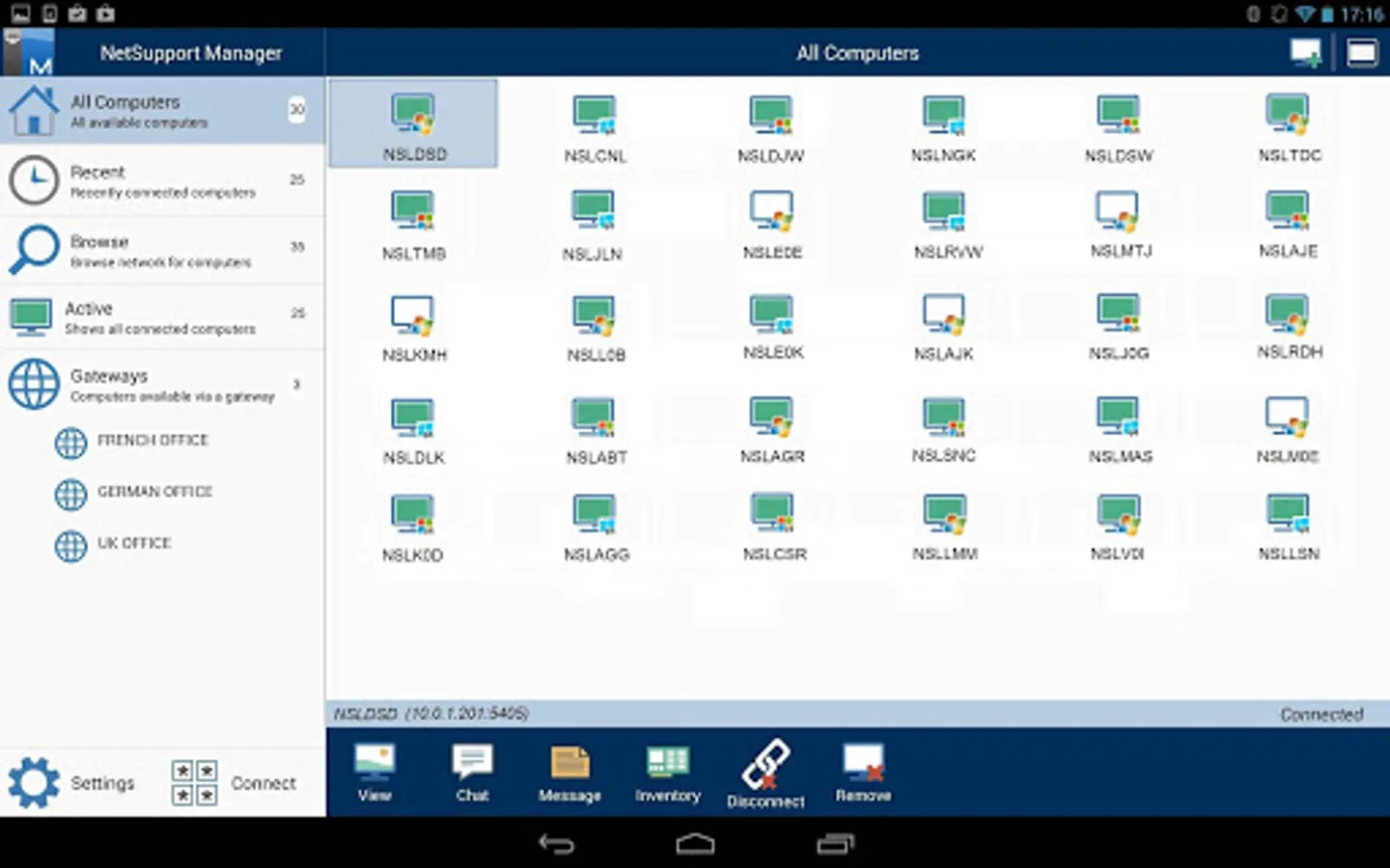 The NetSupport Manager Control for Android provides mobile remote control and remote desktop access for existing NetSupport Manager remote control users remotely from any Android Tablet or smartphone.