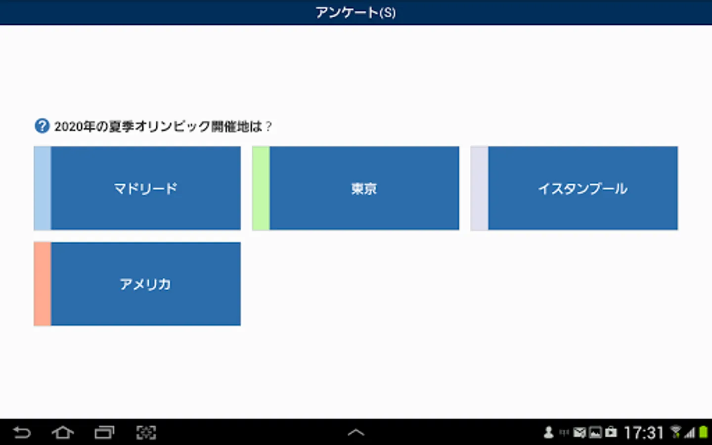 Students answer the questions in the questionnaire presented in real time, and the aggregated results are collected by the teacher.