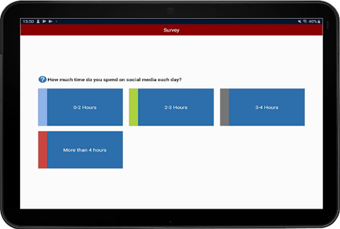 - Class Surveys: Teachers can conduct on-the-fly surveys to gauge student knowledge and understanding. Students are able to respond in real-time to the survey questions posed and the teacher can then show results to the whole class.