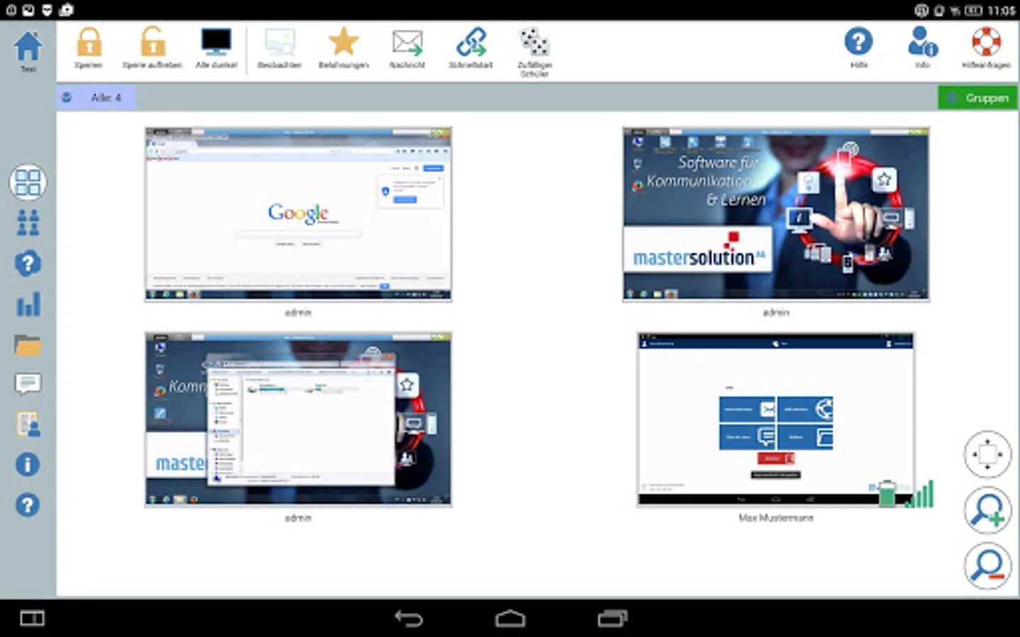 The new version provides a mobile component is available, which can be downloaded for free from the Google Play Store. The Mobile Control App provides targeted support for the mobility of the teacher or trainer, allowing control and monitoring of classroom management solution via Android tablet and smartphone. Teachers and coaches will benefit from the app as a mobile complement to the classic network management, which connects after installing automatically with the MASTER SOLUTION SUITE.