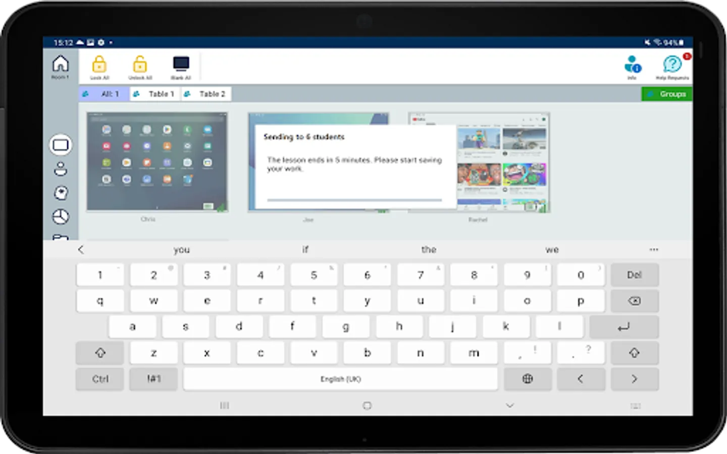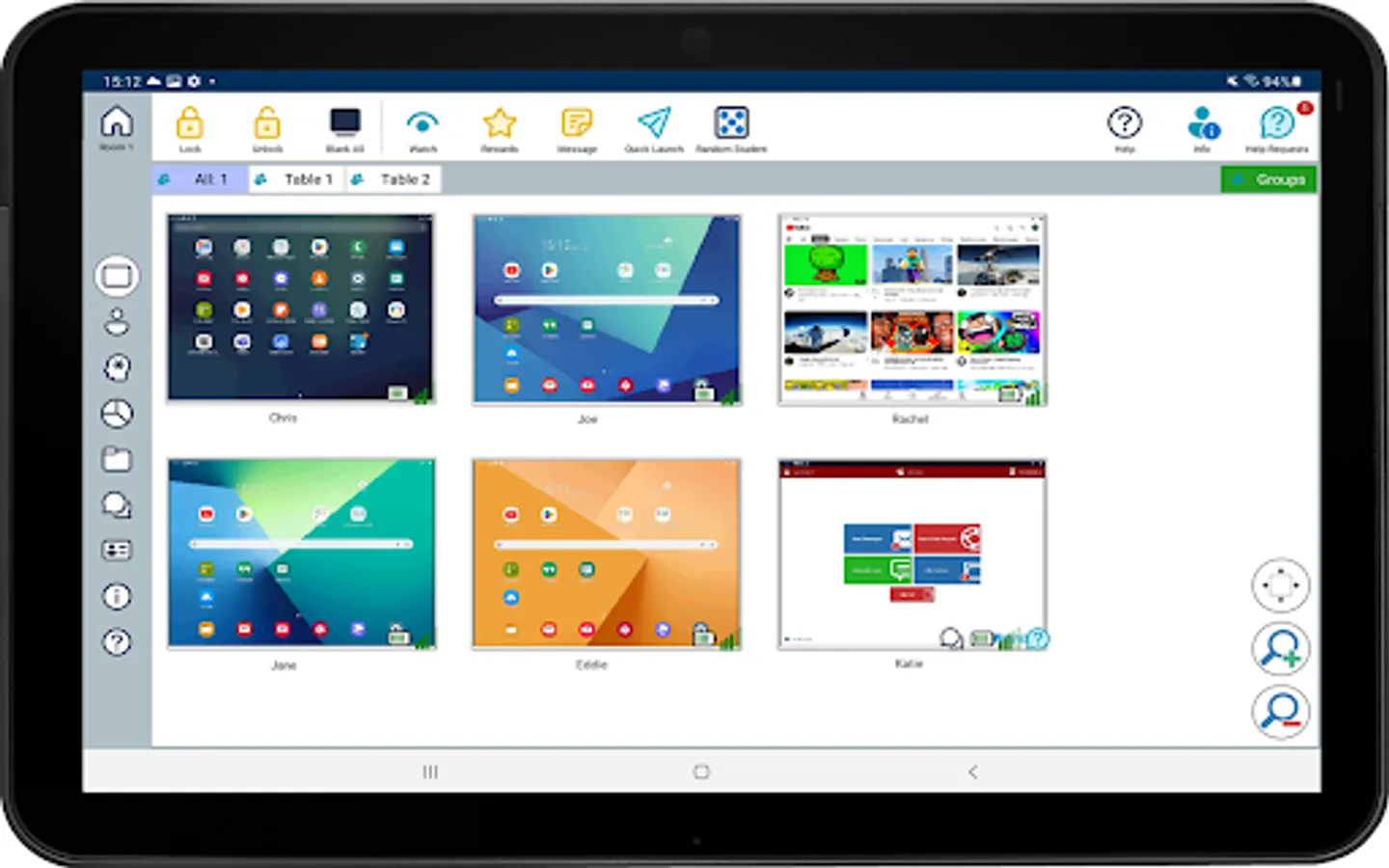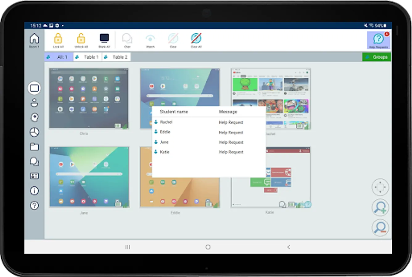 - WiFi/Battery Indicators: View the current wireless and battery status for each connected student tablet.