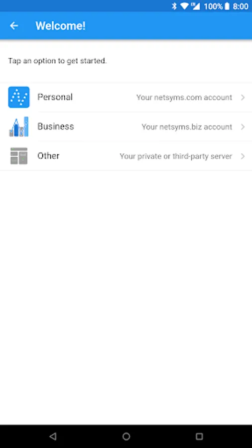 Access your Netsyms Apps account from anywhere. With full support for personal, business, self-hosted, and third-party servers, plus 2-factor authentication and multiple account support built in, you'll always have all the functionality and security of the web and desktop version.