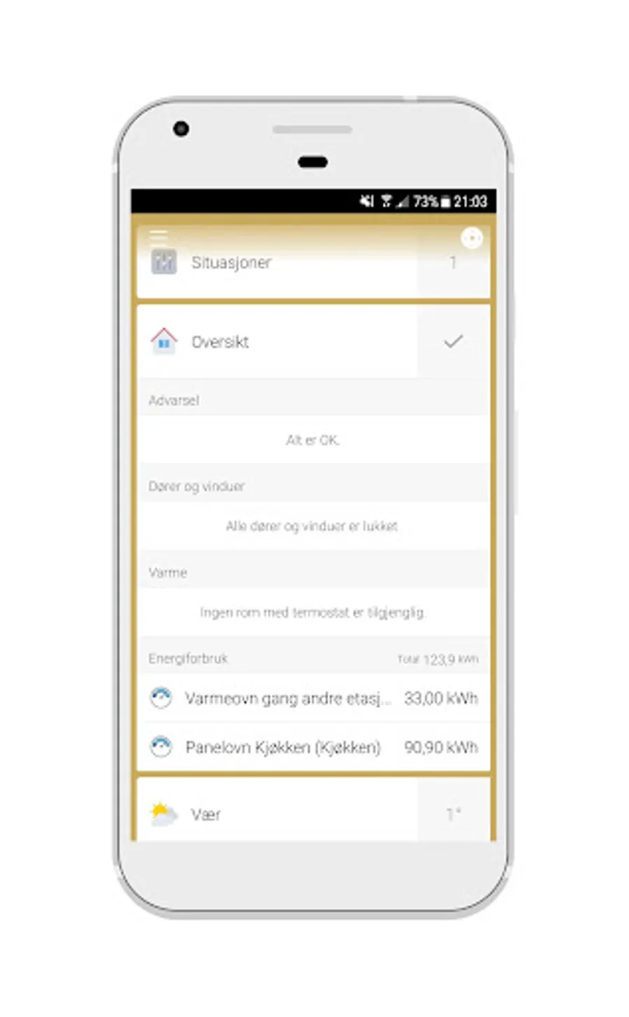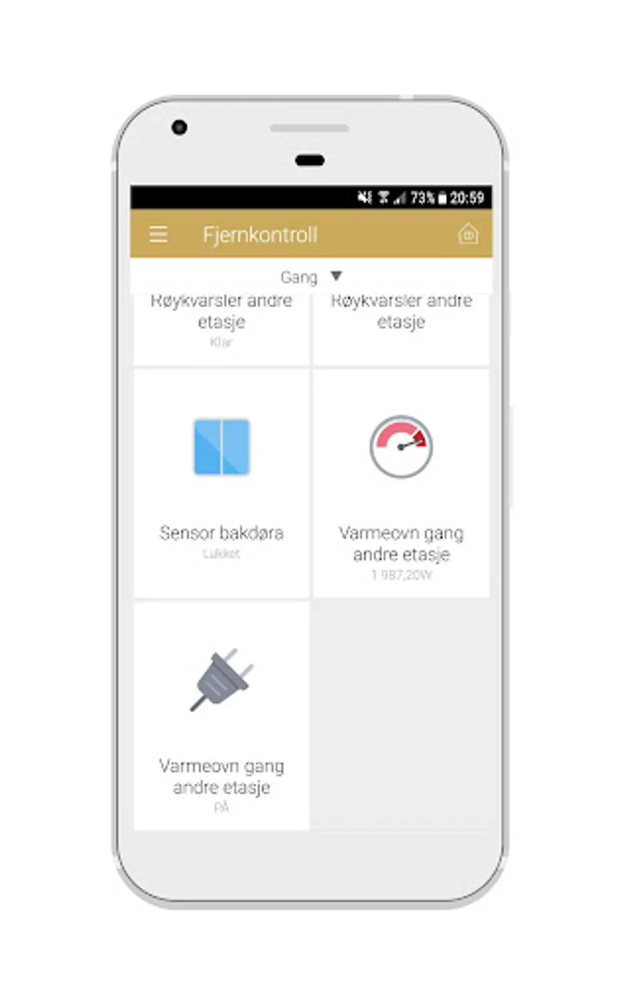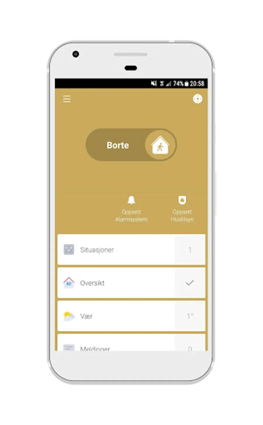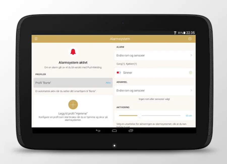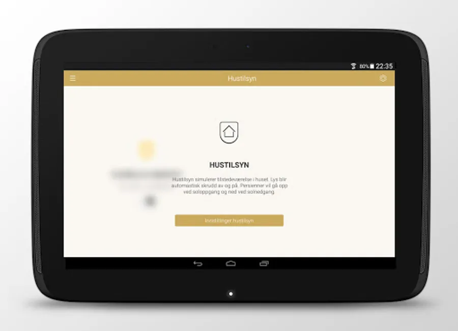 • Hustilsyn: This function turns on lights, music and sounds in the house while you are away, simulates a human presence