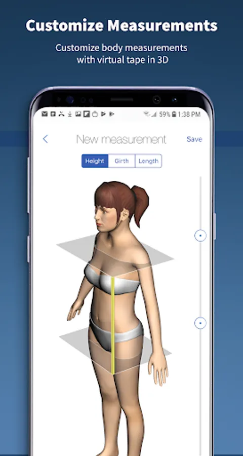 Take just one pose in front of the device’s camera to get your accurate 3D avatar with all body measurements.