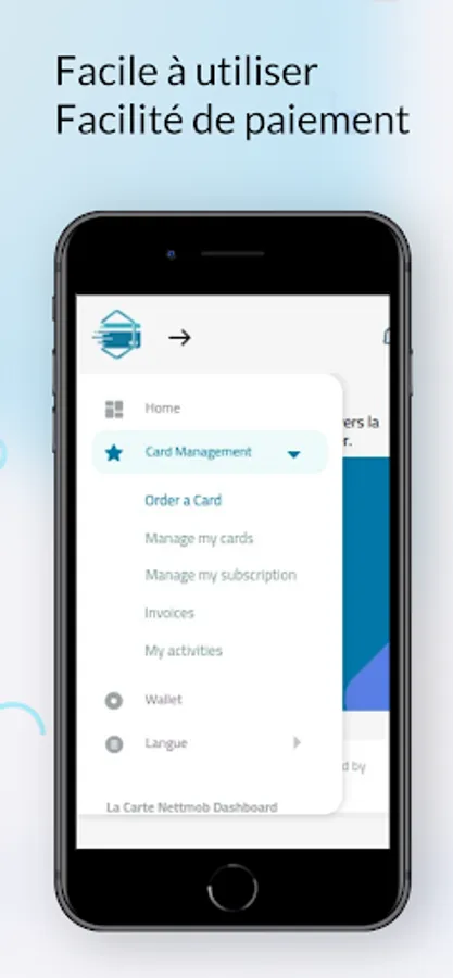 But that's not all ! We also want to give you back full control of your finances, letting you manage your money according to your own rules and in complete safety. To do this, we use the latest approved technologies to always go further and make the Nettmob card one of your best banking applications.