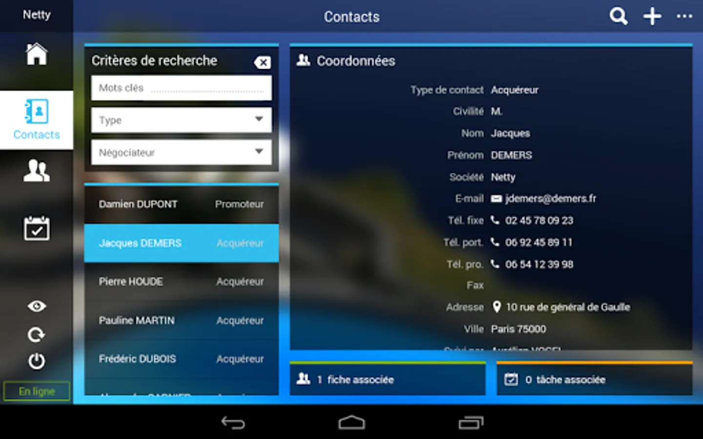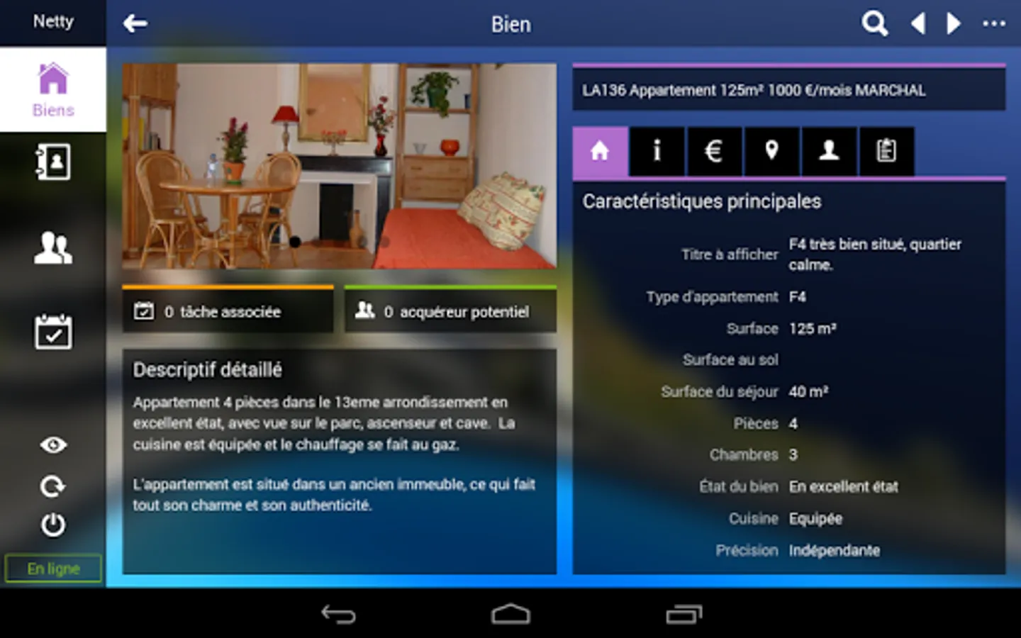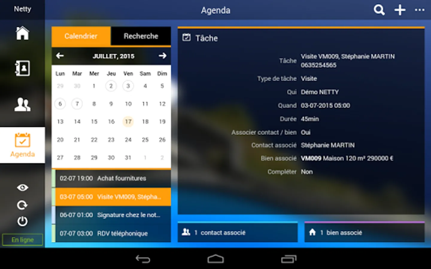 Netty is a modern and efficient real estate software. The Netty Mobile application is now available for Android and allows real estate professionals to carry their desk in their pocket! The application is fully operational in offline mode and an automatic synchronization will take place as soon as an internet connection is found.