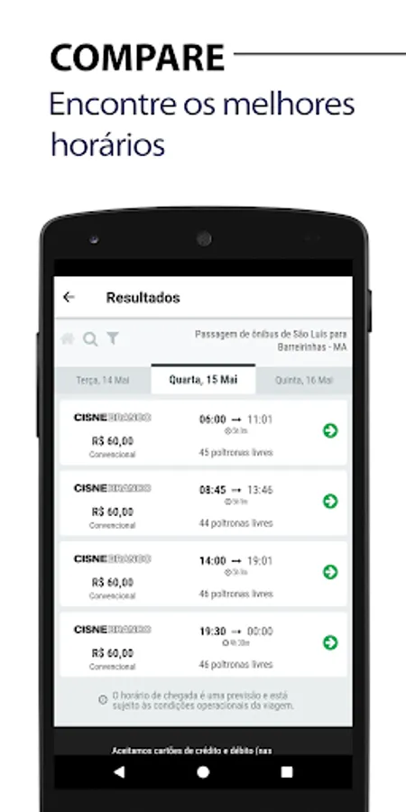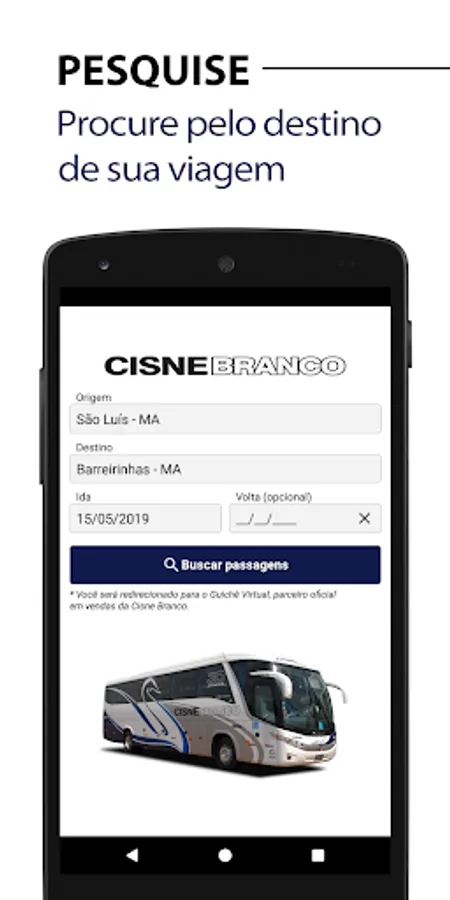 With the Cisne Branco Passenger Ticket Application you guarantee your seat in advance of wherever you are and with the same price of the bus station. Travel with Cisne Branco through São Luíz, Santa Rita, Vargem Grande and other cities of Maranhão. Download FREE app!