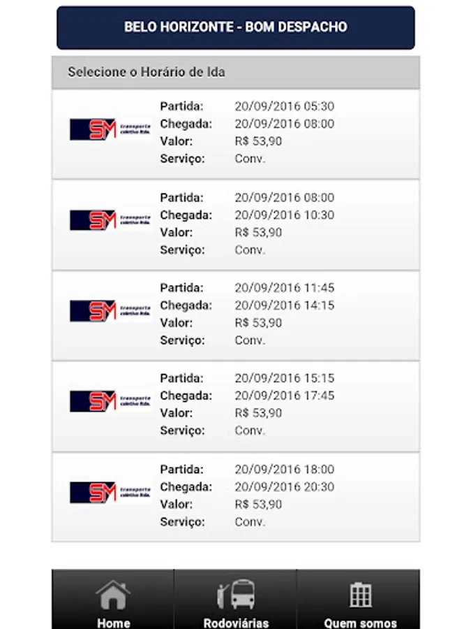 Application to look and buy company bus tickets Santa Maria to major destinations in Brazil. Additionally, you find the address of the main road of Brazil.