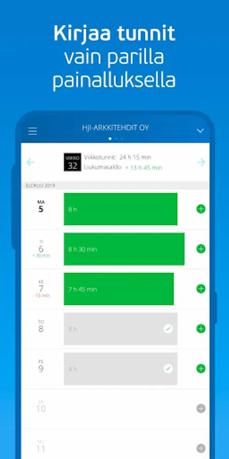 The app also provides many useful features and views for employees. With the in-app work time logger, you can book your own hours with just a few clicks. In addition, you will also see accrued vacation days and slip balances.