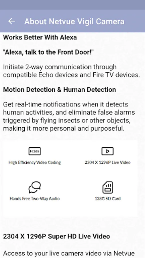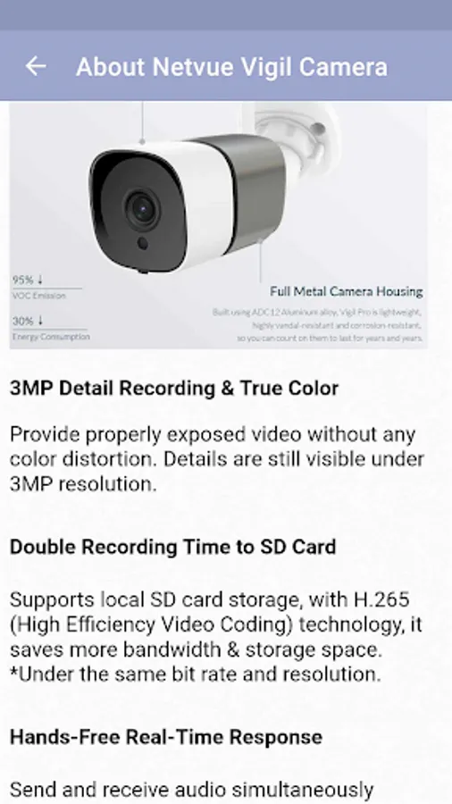 You can find out what you are wondering about Netvue Vigil camera from the app. It explains how to set up your Netvue camera, its features, how to insert an SD card, and how to share it with others. Netvue home security cameras stand out with their auto focus function and smart artificial intelligence motion detection.