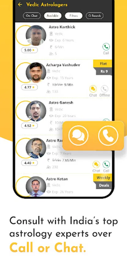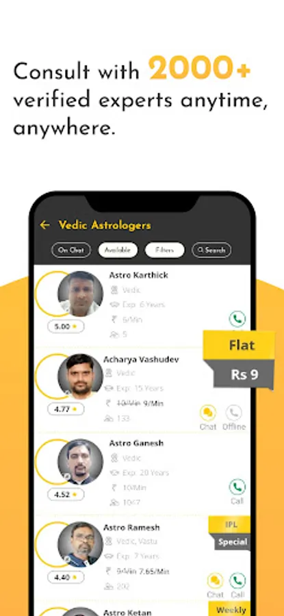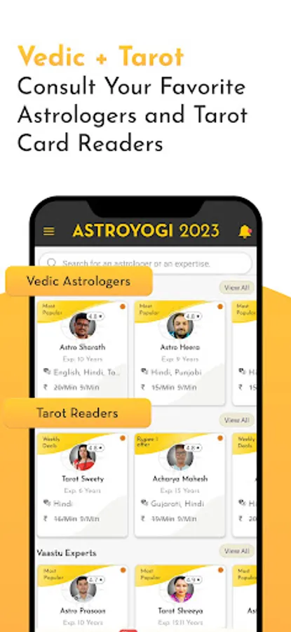 2. Pick among expert astrologers, numerologists, tarot card readers, Kundli astrologers, Vedic astrologers, Vastu Consultant, Nadi Astrologer, KP astrology experts, psychic reader, and psychic astrologer, among others on our live astrology app.