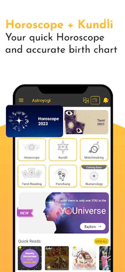 Get unlimited access to free horoscopes, Live shows, astrology predictions, transit predictions and new free Kundli on your smartphone with the Astroyogi online astrology app.
