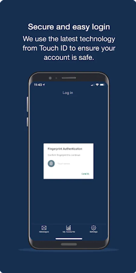 The app can be accessed using PIN, Touch ID or Face ID for secure authentication.