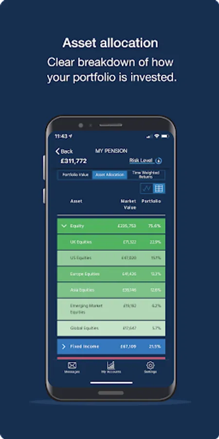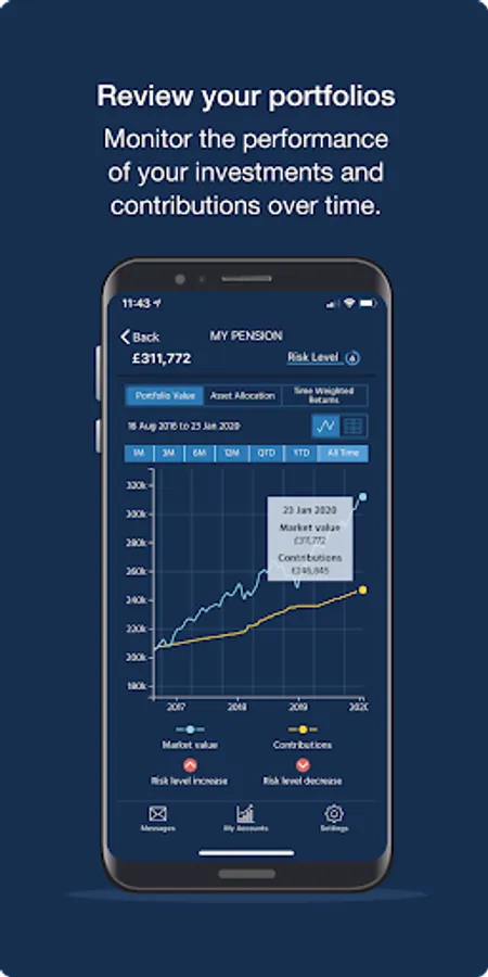 - Interactive view of portfolio value and contributions, with customisable timeframes