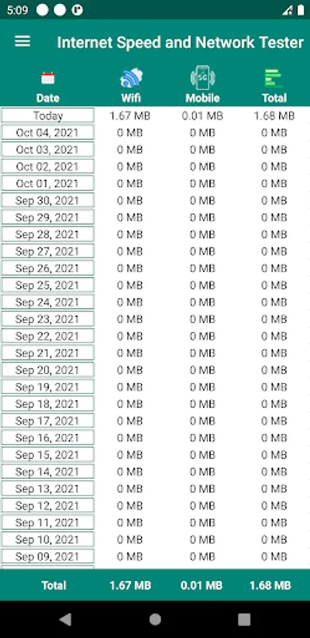 Internet Speed and Network Tester tells information about all apps visited today along with how much data they have consumed. It also tells about how many times the application is visited.