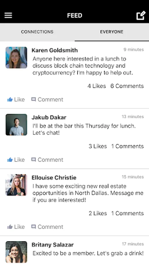 The app changes the way in which members socialize and network, by facilitating how they connect face-to-face and engage more effectively and efficiently.