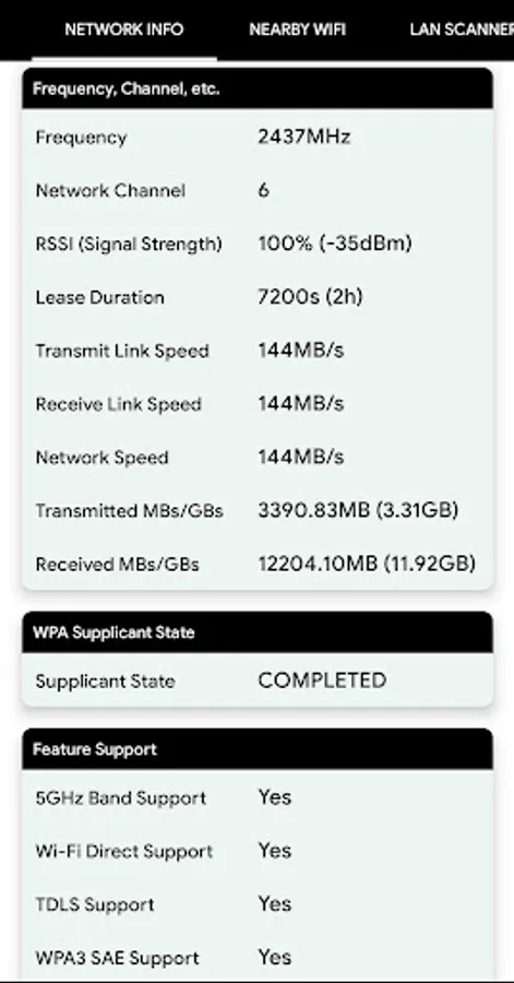 3. Display current wifi status (if connected then show the details) and nearby wifi info with signal strength.
