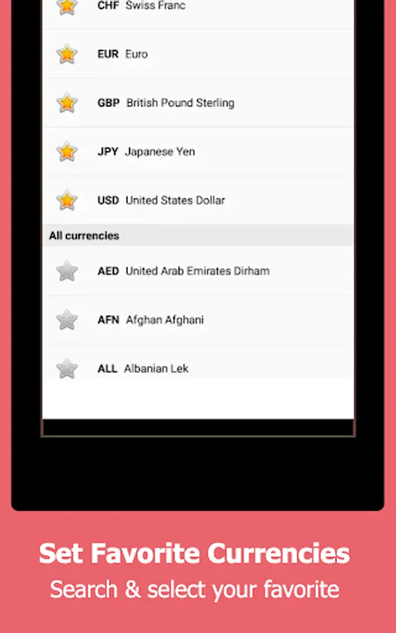▶ Set favorite currencies: tap ⭐️ to save to favorites