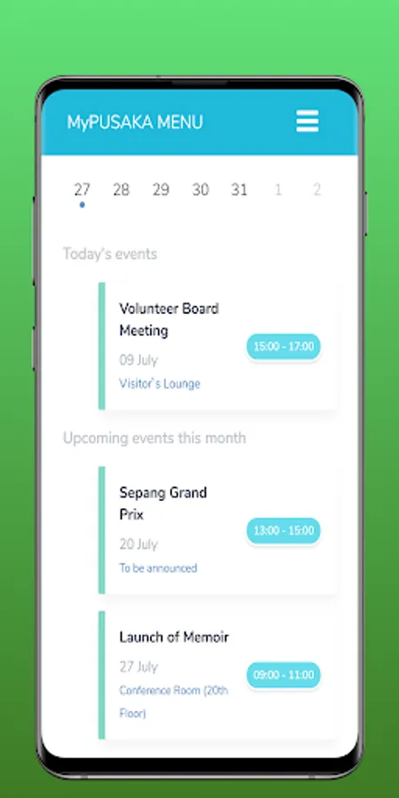 Makes it easy for staffs to book a meeting room, delete a room reservation, organize events or even bump a meeting to a different room. Users are always kept updated with the latest events and meetings held by organizers.