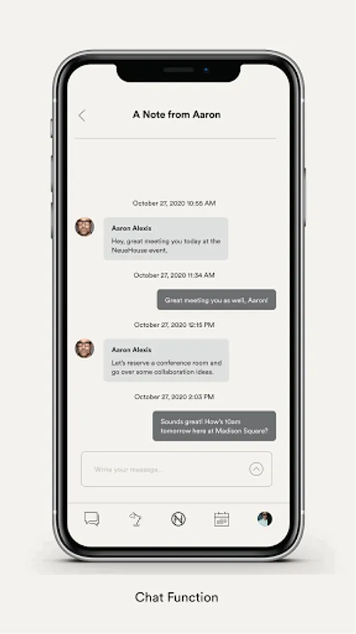 NeueHouse is the private workspace and cultural home for creators, innovators, and thought leaders. The NeueHouse Member App allows Members to access the member directory, direct message, book conference rooms, RSVP to Member events, view perks, review invoices,and much more.