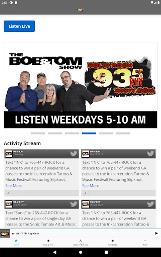 Solid Rock 93-5 KHY is Lafayette's ONLY rock station. Tune in for The Bob & Tom Show during the morning and Strange on your way home. Listen for the Workforce Rock Block, Top Ten from When, Triple Play, Traffic Jam, Dee Snyder's House of Hair, and Hard Drive with Lou Brutus.