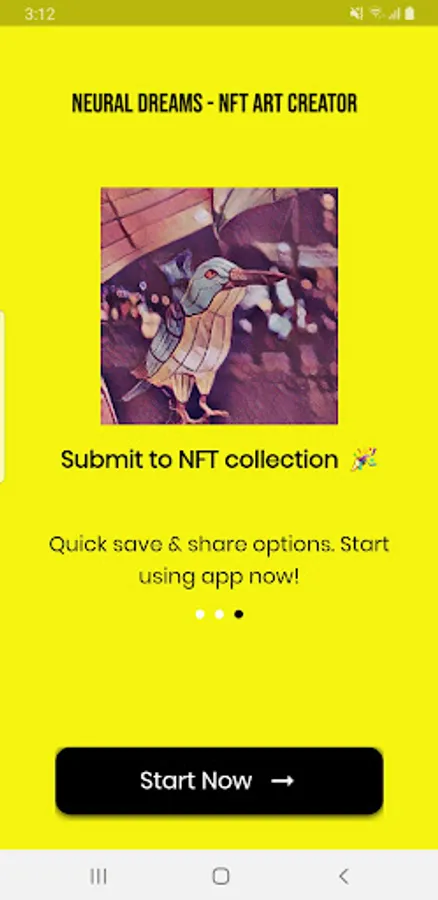 Neural Dreams app enables you to create unique digital art with a single click. Just upload your image or photo and select a style. Wait for a couple of seconds while Neural Dreams works its magic. Download your artwork and sell it as an NFT on your chosen marketplace. It's that simple! Each artwork is unique so try different style filters and save the amazing ones. You can share the NFT art on OpenSea, Rarible, SuperRare, Nifty Gateway, Foundation, VIV3, BakerySwap, Axie Marketplace, NFT ShowRoom, WazirX and so on.