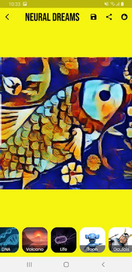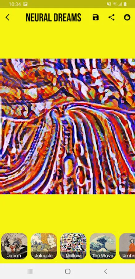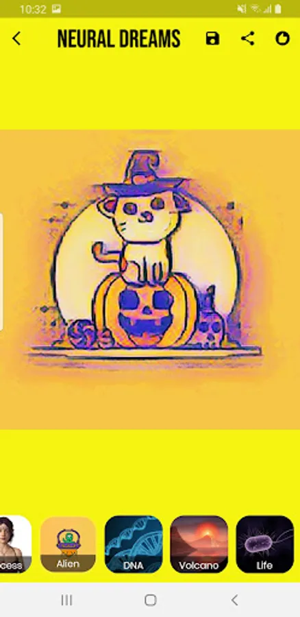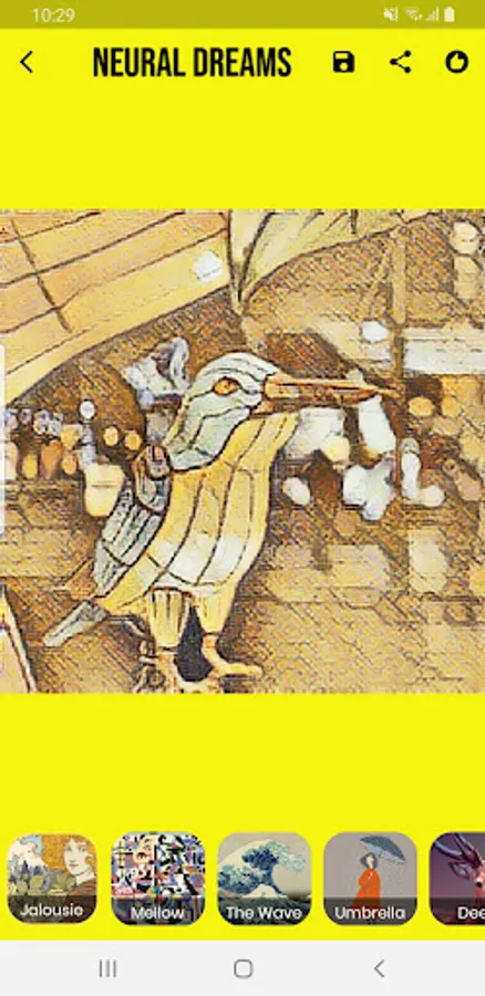 Using Neural Dreams app is free and let's you create digital effects without watermarks. The filters can generate awesome NFT masterpieces and make your work stand out. Convert base art images or photos to new creations in one tap.