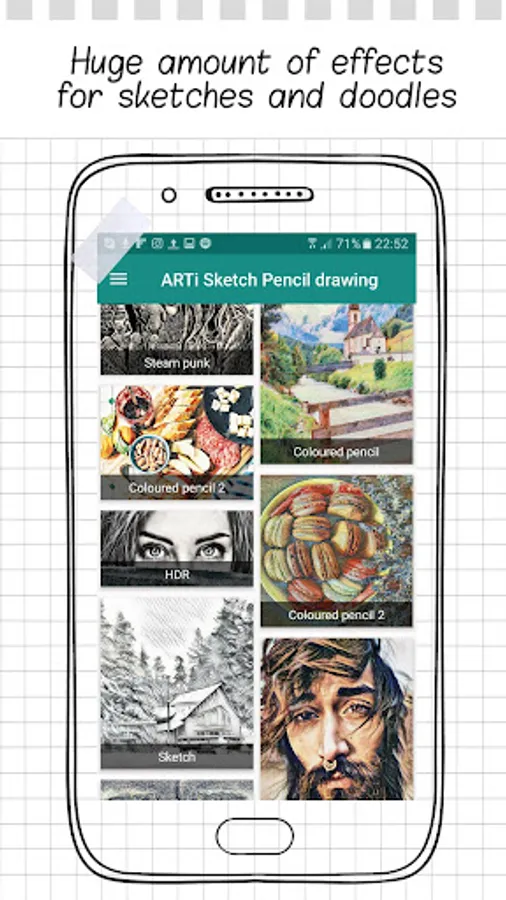 ARTi "Sketch and Pencil drawing" turn your photos and selfies into famous fine art paintings with the help of artificial intelligence. In this app we collected the most interesting effects for realistic drawing. Now you can create sketches, doodles, cartoon effect, pencil drawing from your photos.
