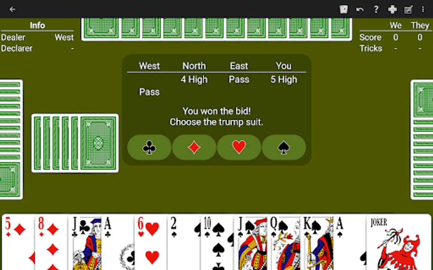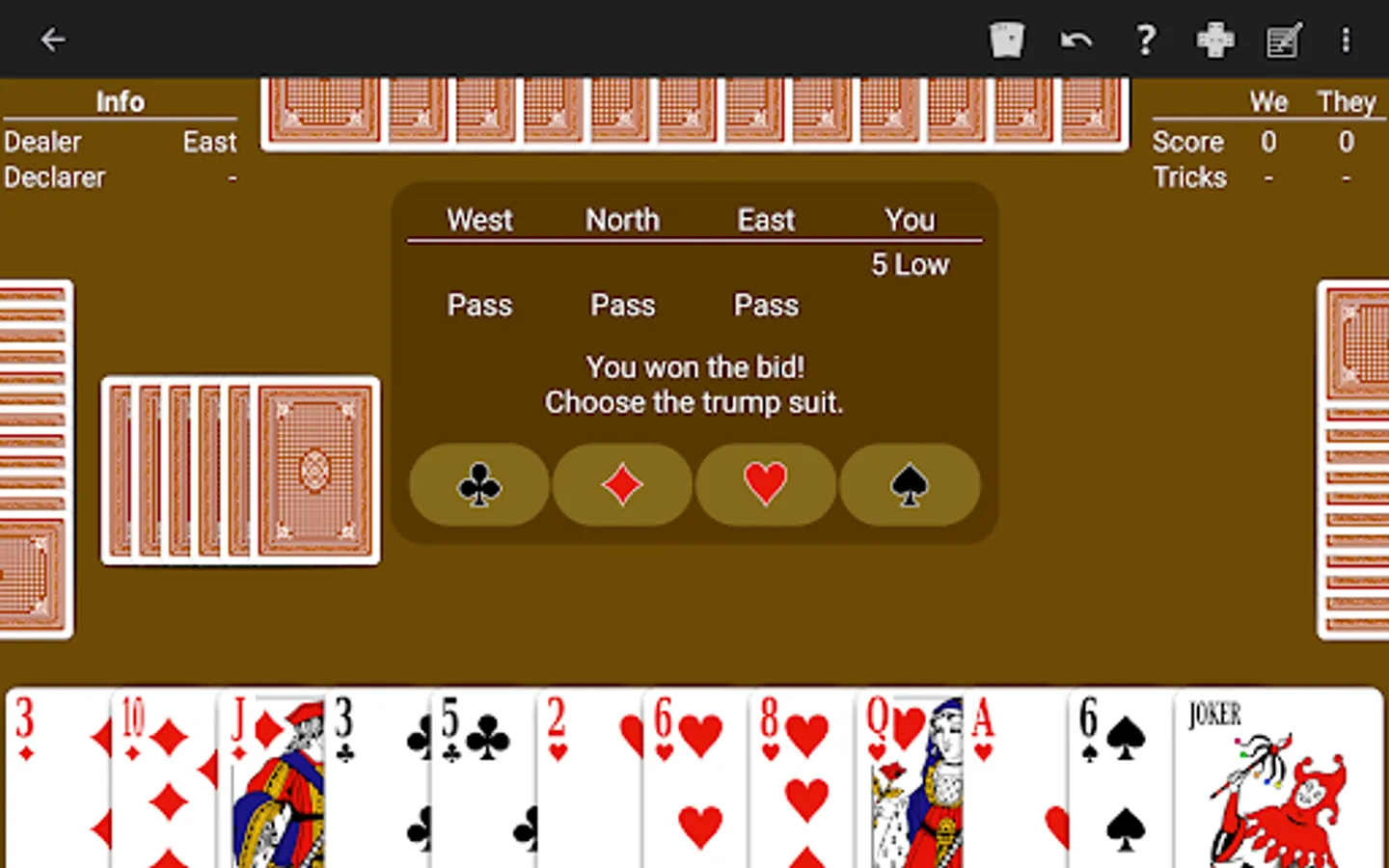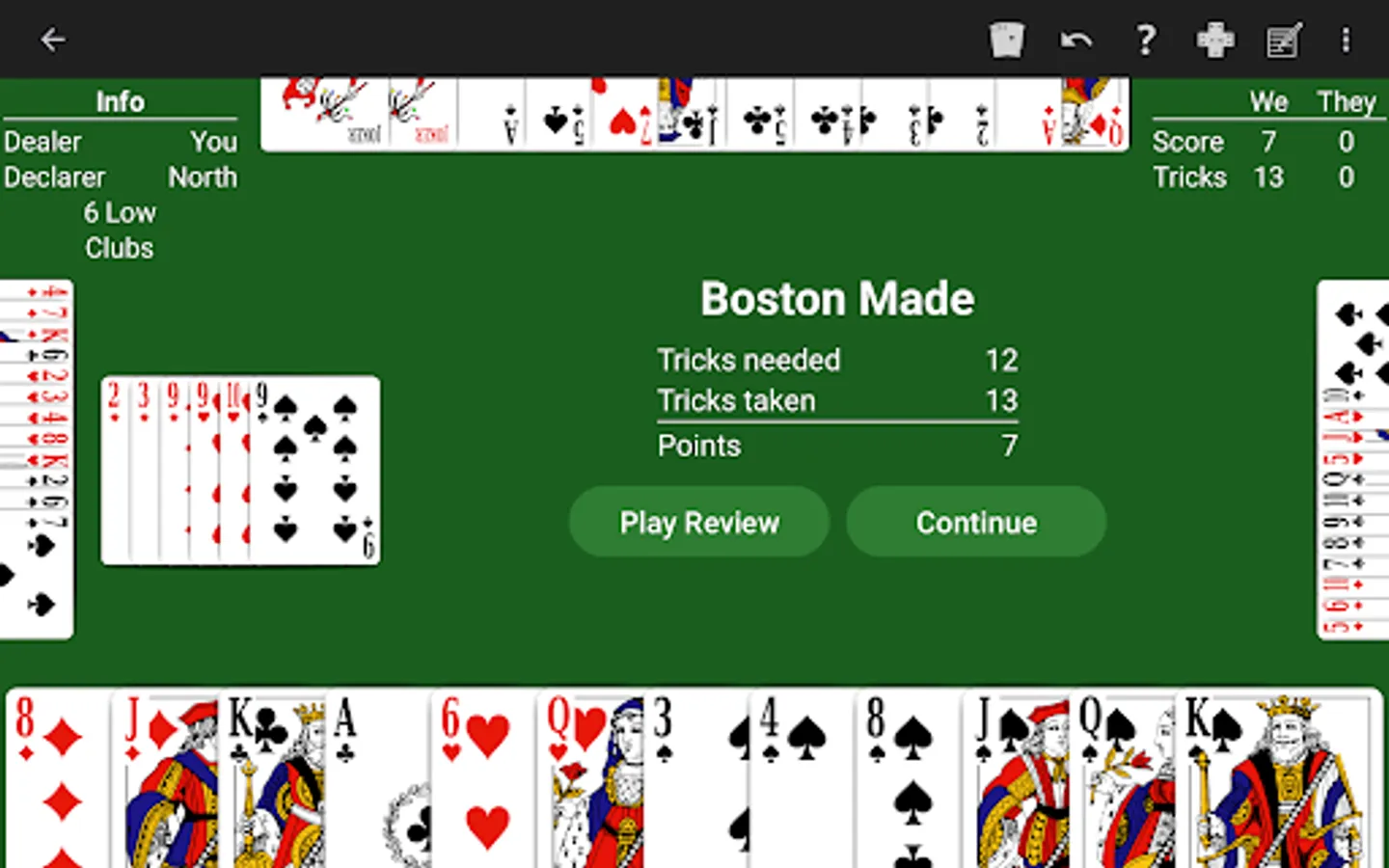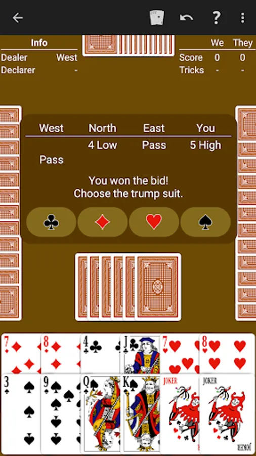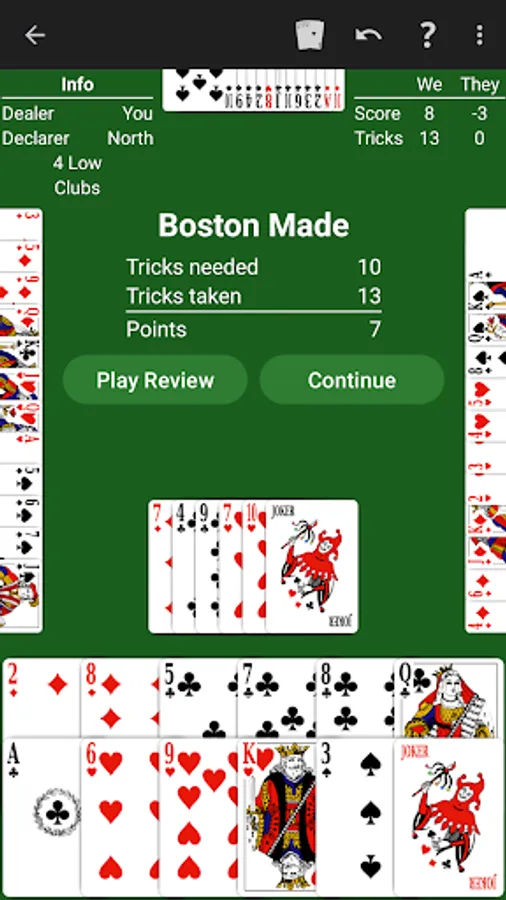Just learning Bid Whist? The NeuralPlay AI will show you suggested bids and plays. Play along and learn!