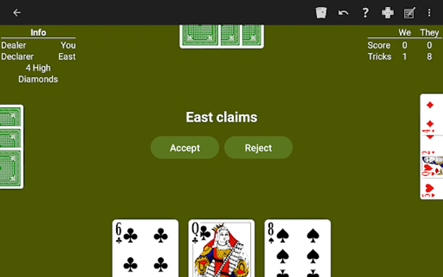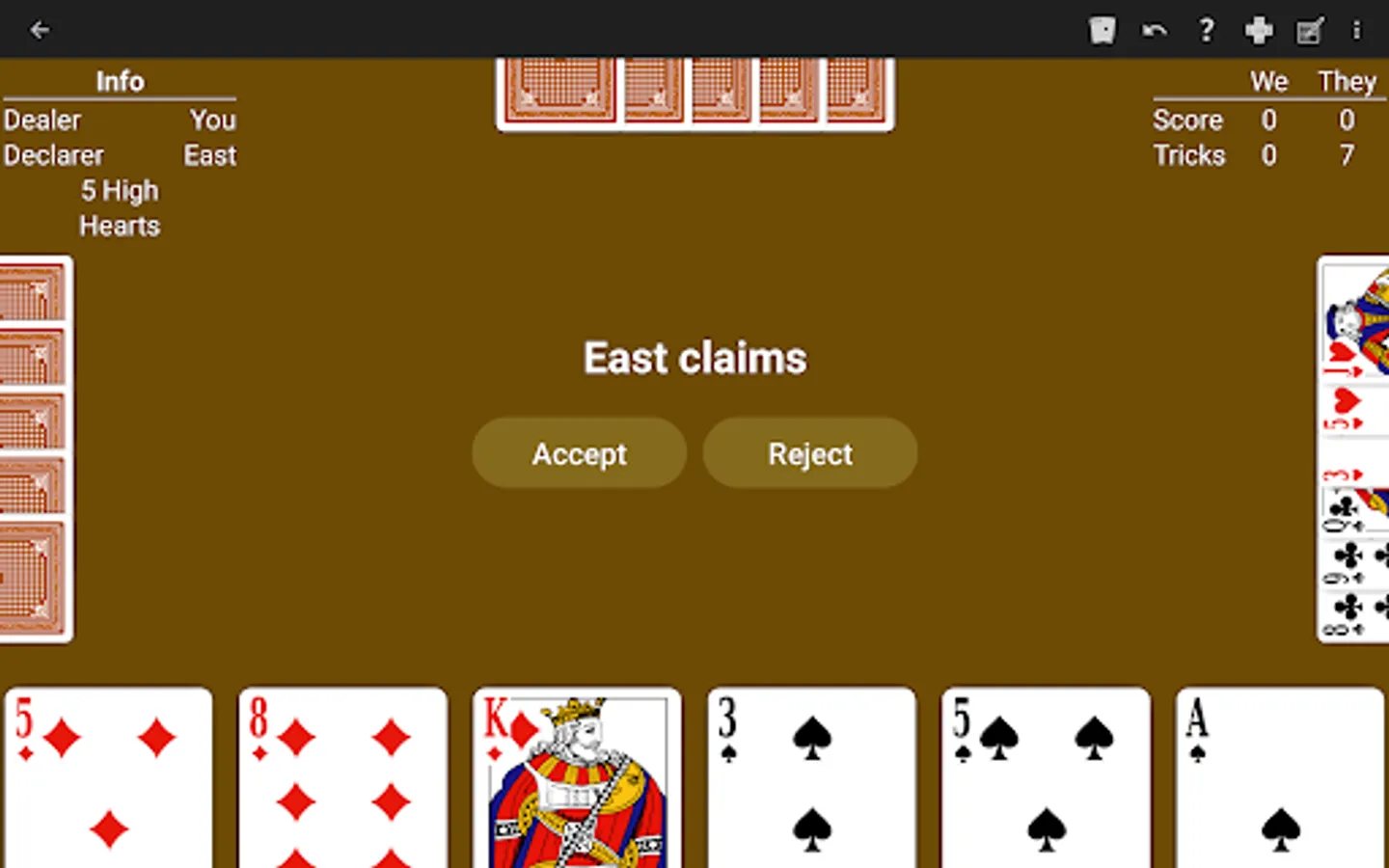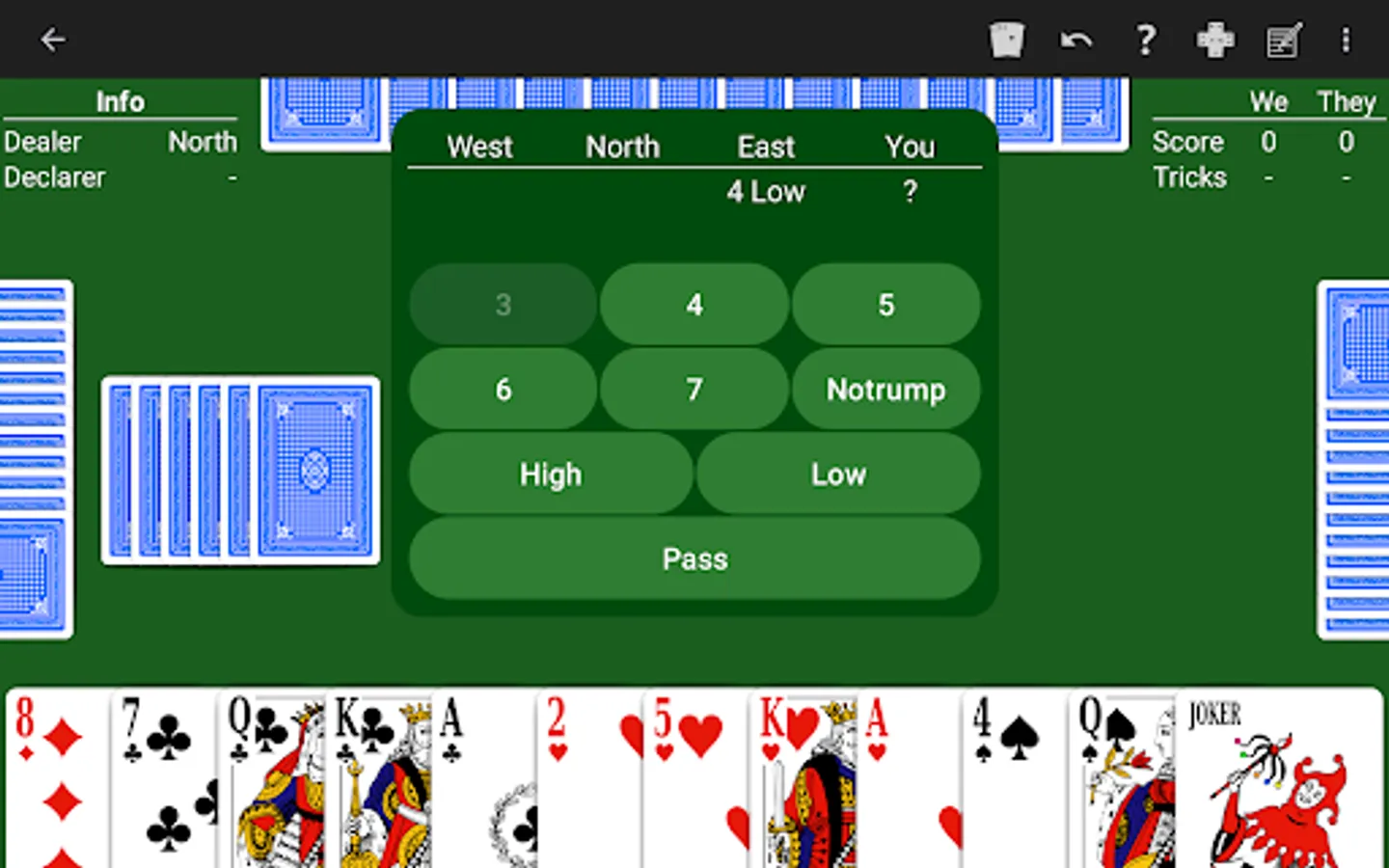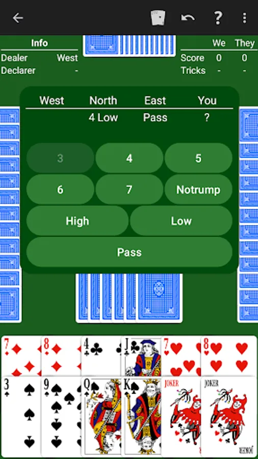 • Overtrick scoring. Choose whether overtricks are scored as one point or no points.