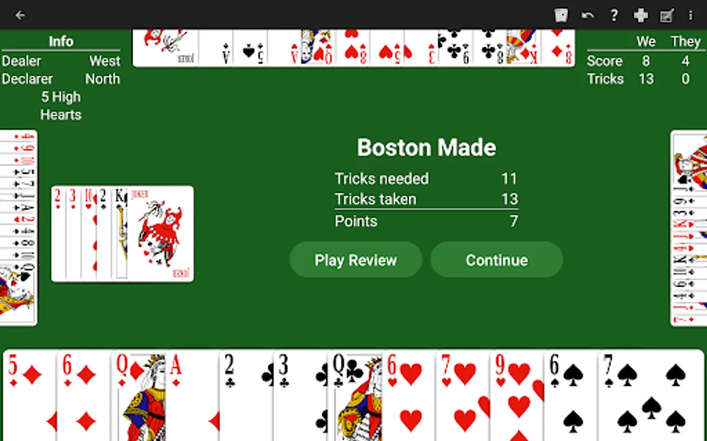 • Finish hand when set. Play quickly. When the hand is set, optionally finish the hand early as there is no need to play the remaining tricks of the hand.