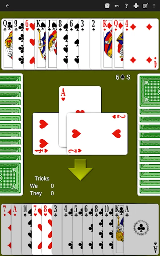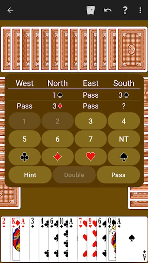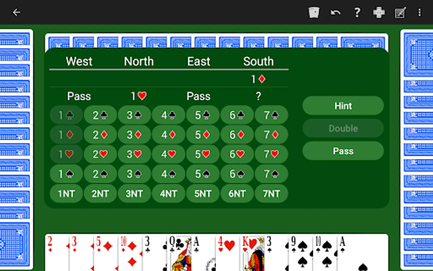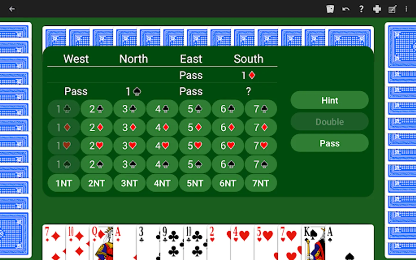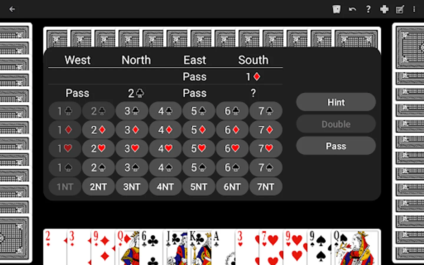 Our unique double dummy solver provides six levels of computer AI play. Not sure about the play of a hand? Step through an approximate double dummy solution.
